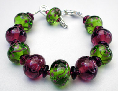 "Wine & Grapes" bracelet - my lampwork beads in purples and greens.