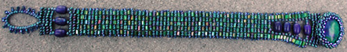 A square stich bracelet that turned out Art Deco. Beaded stone cab clasp.