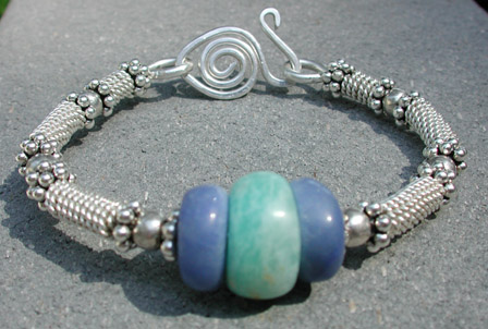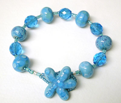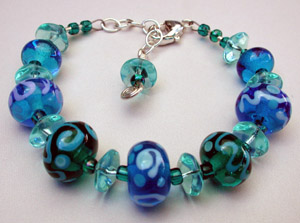 "Ocean Blues" bracelet - my lampwork beads in teals and blues.
