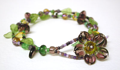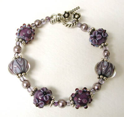 "Wine & Grapes" bracelet - my lampwork beads in purples and greens.