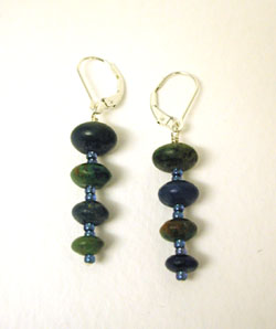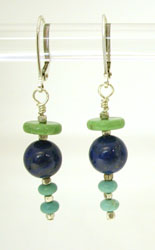 Lapis, Gaspeite and Turquoise. Made to go with the Apples and Summer skies bracelet and necklace. Sterling silver French ear wires.