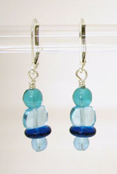 Peace on Earth Earrings - Beautiful blue green chrysocolla in graduated sizes, hung on sterling silver leverback wires. Some people have said that chrysocolla looks like the earth as seen from space and feel it is a natural stone to use in meditating for world peace. As a 5th Chakra stone, it is believed to stimulate not only creativity, but confidence in creative expression by calming and releasing fear.